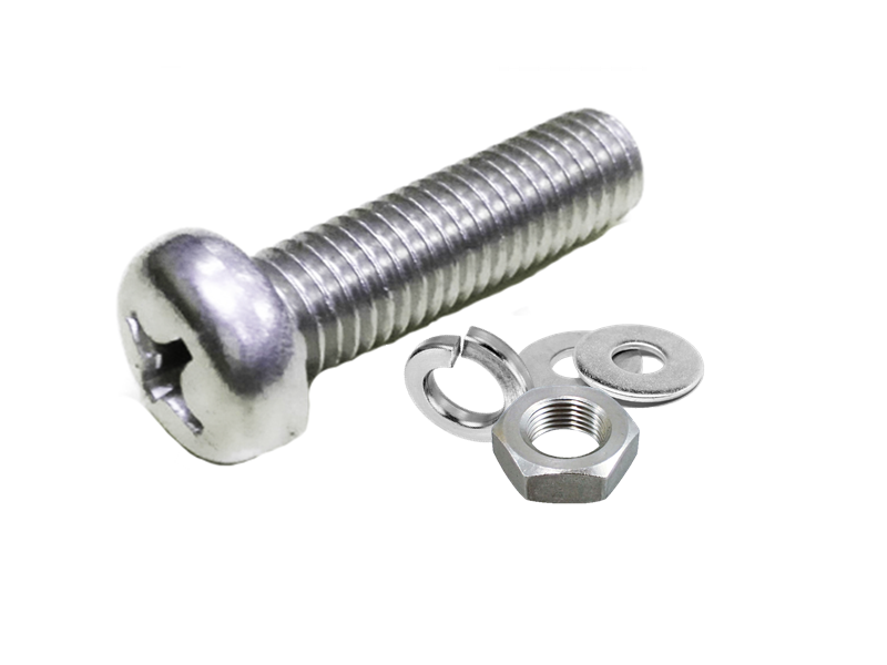 สกรูน็อตหัวเหลี่ยม สแตนเลส M4 ครบชุด (1Nut+2FW+1SW)
