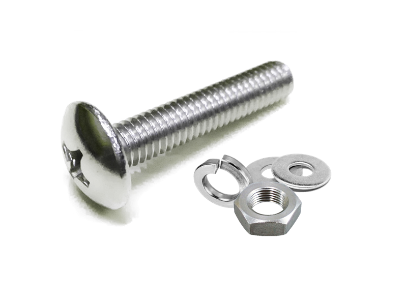 สกรูหัวแฉกนูน JP สแตนเลส M8 ครบชุด (1Nut+2FW+1SW)